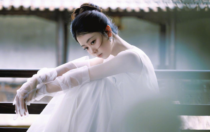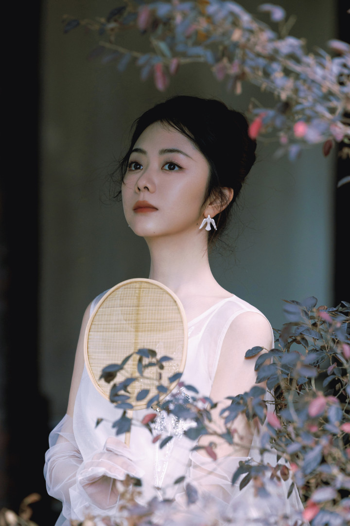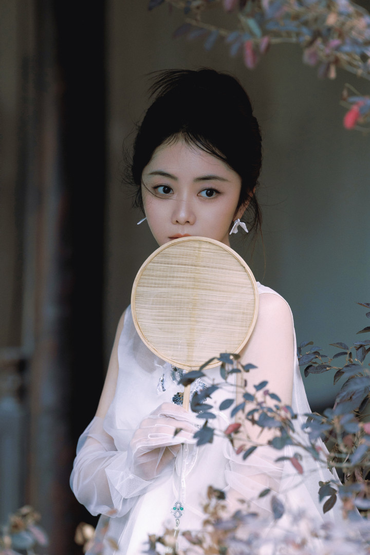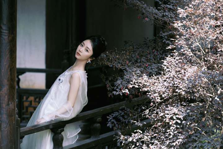 白纱裙太仙了! 谭松韵古意景致中, 温婉空灵似画中走来