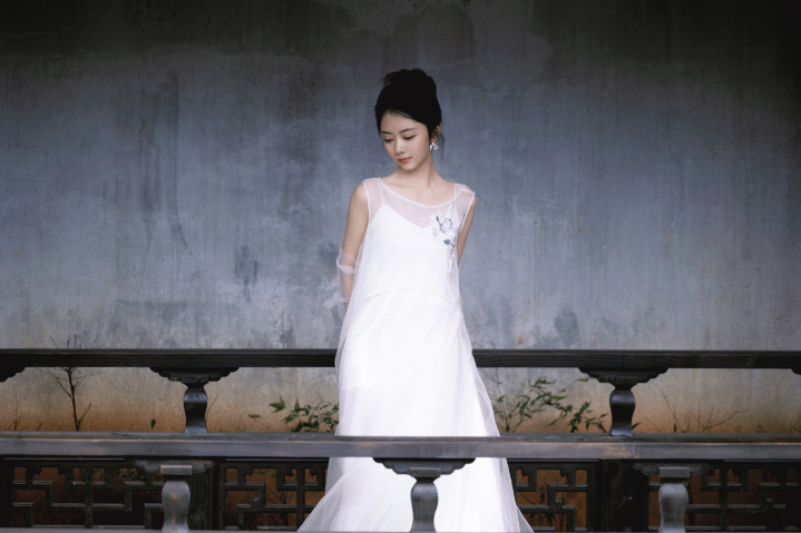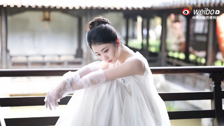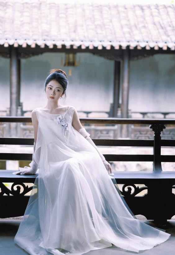 白纱裙太仙了!谭松韵古意景致中,温婉空灵似画中走来